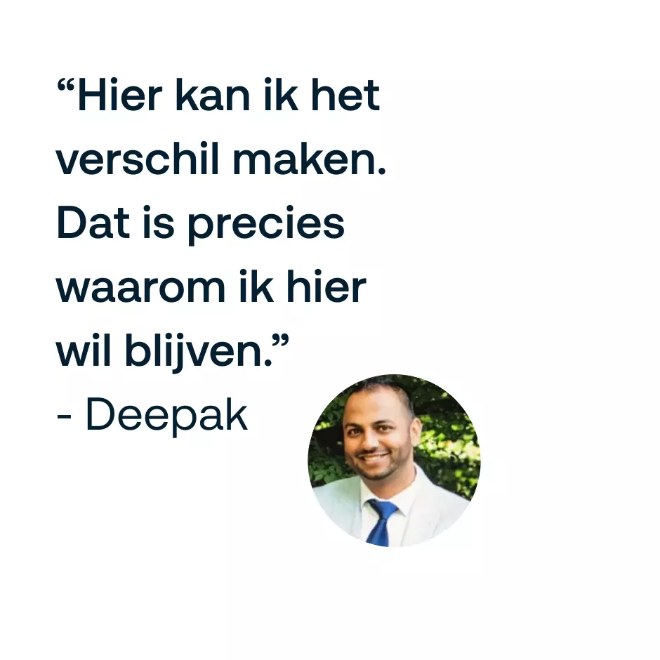 Voor Deepak is werken in de luchthavenbeveiliging al meer dan twintig jaar een bewuste keuze. Niet alleen vanwege de dynamiek van Schiphol en de samenwerking binnen een hecht team, maar vooral omdat hij elke dag kan bijdragen aan de veiligheid van de burgerluchtvaart. Het gevoel écht een verschil te kunnen maken en zijn steentje bij te dragen, maakt het werk voor hem extra waardevol. Inmiddels is hij Duty Manager Transport & Aviation bij Securitas.